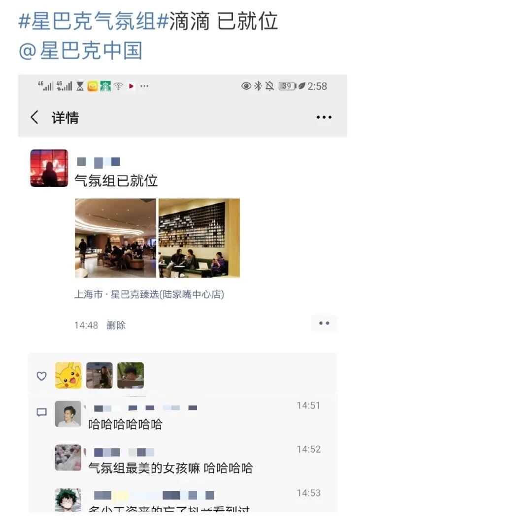 我搜了一下#星巴克氣氛組#,看到不少消費(fèi)者曬出自己的朋友圈截圖。