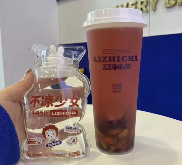 姜茶本身具有養(yǎng)生屬性,荔制茶以“不涼少女”為主題,購(gòu)買飲品滿10元附贈(zèng)熱水袋,養(yǎng)生、實(shí)用,還有一點(diǎn)叛逆感。