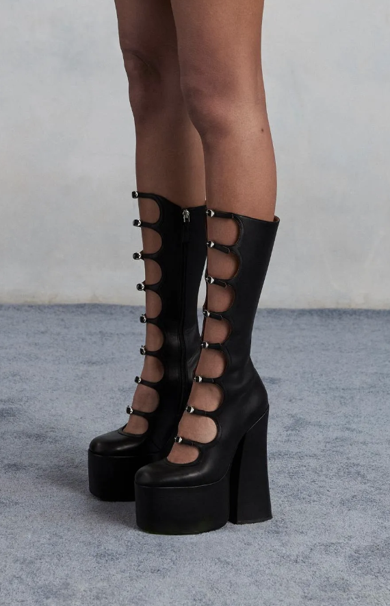 而 Heaven 恰好繼承了時代的時髦影子,不斷深挖復(fù)刻出千禧年的流行印象,繁復(fù)的花紋,搶眼的搖滾金屬元素配件,以及極具 8090 年代流行風(fēng)尚的夸張厚底鞋。