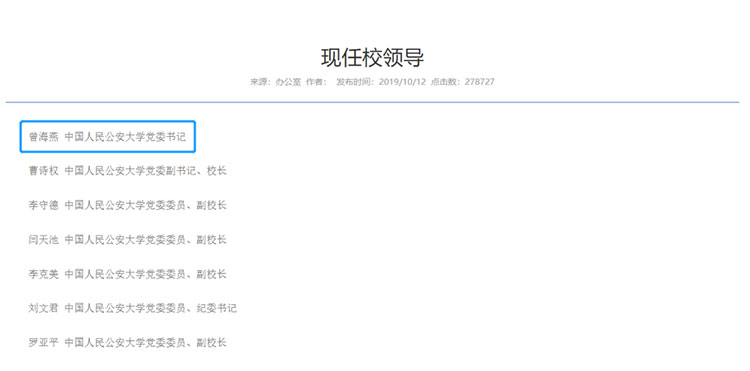 4月10日,中國(guó)人民公安大學(xué)官網(wǎng)現(xiàn)任領(lǐng)導(dǎo)一欄更新顯示,曾海燕已任中國(guó)人民公安大學(xué)黨委書記。