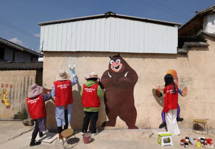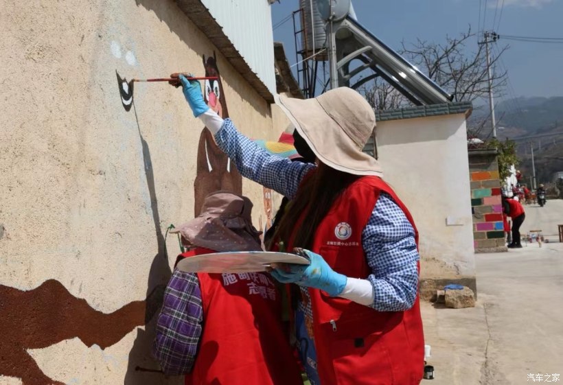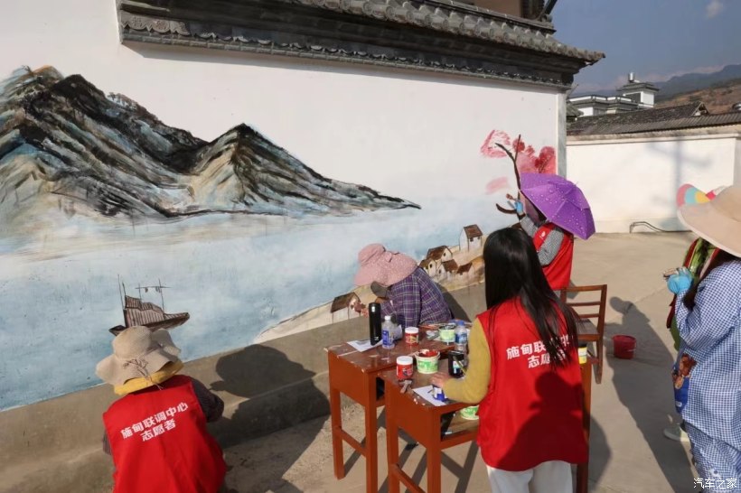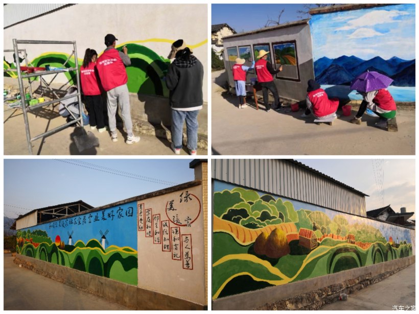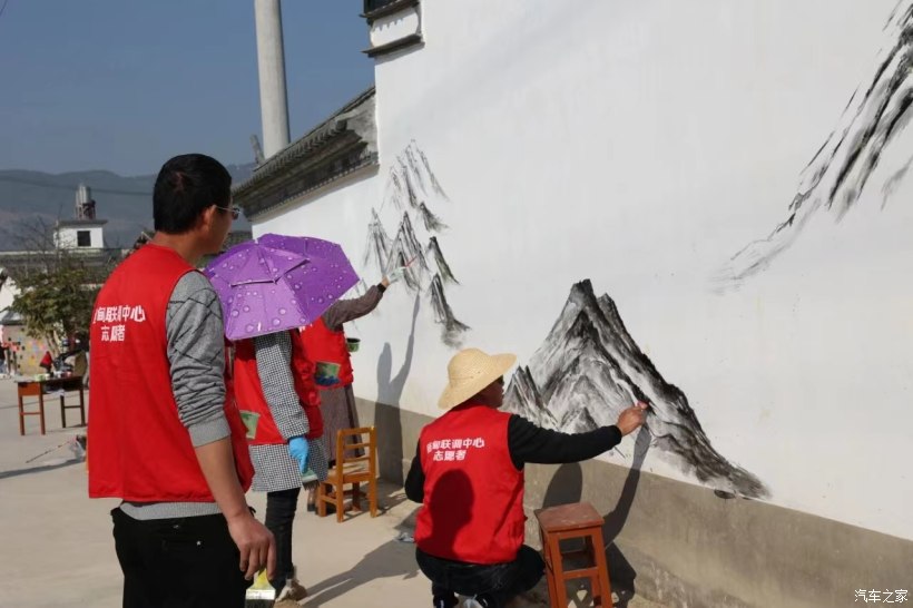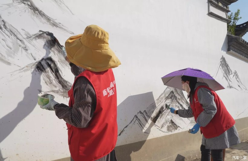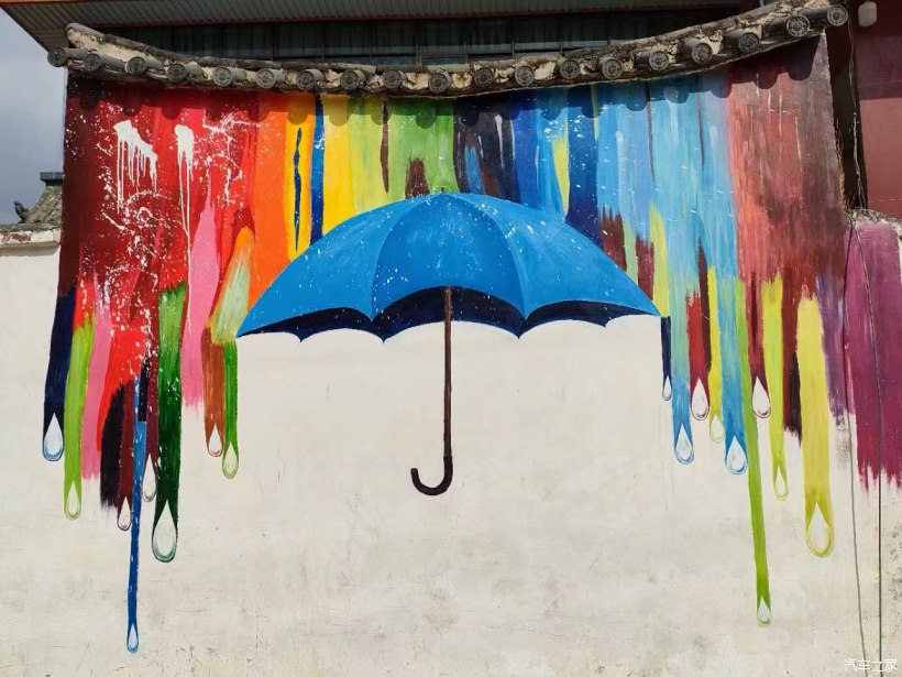 在前一久,收到鎮(zhèn)里的邀請(qǐng),為社區(qū)繪制墻體畫。我是此次墻繪活動(dòng)的主創(chuàng)人和組長,帶領(lǐng)著7名本鎮(zhèn)的中小學(xué)美術(shù)老師和9名返鄉(xiāng)大學(xué)生,組成了墻繪志愿服務(wù)小組,一起完成本次墻繪創(chuàng)作活動(dòng)。為了盡快完成任務(wù),每天都是起個(gè)大早,迎著朝陽,開上朗行向墻繪地點(diǎn)出發(fā)。春天的天氣乍暖還寒,早晚溫差大,早晨過著寒冷的冬天,到了白天天氣卻變得異常炎熱。每天過著早出晚歸的日子,還好有愛車的陪伴,每天能準(zhǔn)時(shí)到達(dá)繪畫場(chǎng)地,也能為我在來去的路上,抵擋太陽,遮風(fēng)避寒。