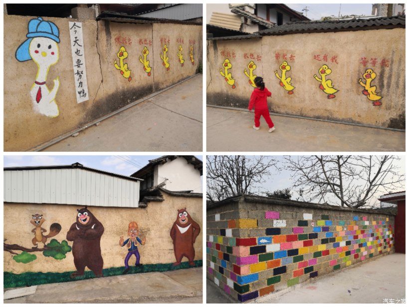 接下來是一幅色彩艷麗的墻繪,墻面長十多米,是返鄉(xiāng)大學(xué)生們的即興之作,約上小伙伴,在五彩斑斕的墻繪下見證我們的友誼吧!