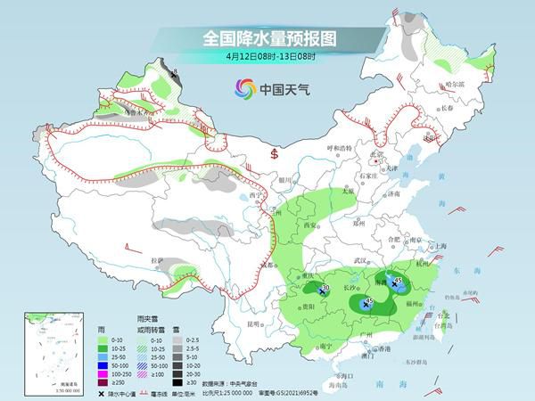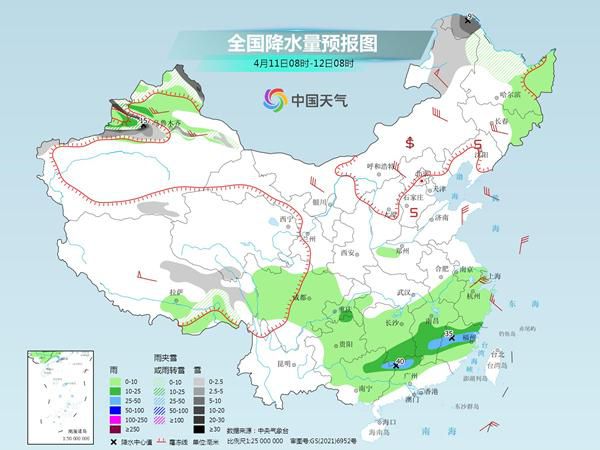 后天,新疆南疆盆地、西藏南部、內(nèi)蒙古東部、青海中部和北部、甘肅東部和河西等地部分地區(qū)有小到中雪或雨夾雪;四川東南部、重慶大部、湖北南部、貴州北部、湖南中北部、江西中北部、福建西北部、安徽南部、浙江西南部等地部分地區(qū)有中到大雨,其中,湖南中部、江西中部等地部分地區(qū)有暴雨(50~80毫米)。