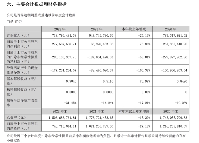 2022年,全聚德實(shí)現(xiàn)營(yíng)收7.19億元,同比下降24.16%;歸屬上市公司股東的凈利潤(rùn)-2.78億元,同比下降76.86%;經(jīng)營(yíng)活動(dòng)產(chǎn)生的現(xiàn)金流量?jī)纛~-1.77億元,同比下降100.32%。