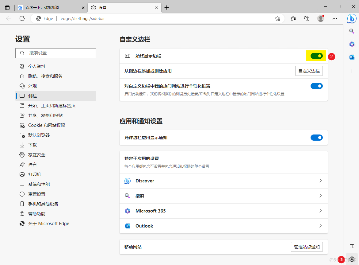 點擊側(cè)邊欄"設(shè)置"按鈕,進(jìn)入自定義邊欄選項,關(guān)閉"始終顯示邊欄"選項。