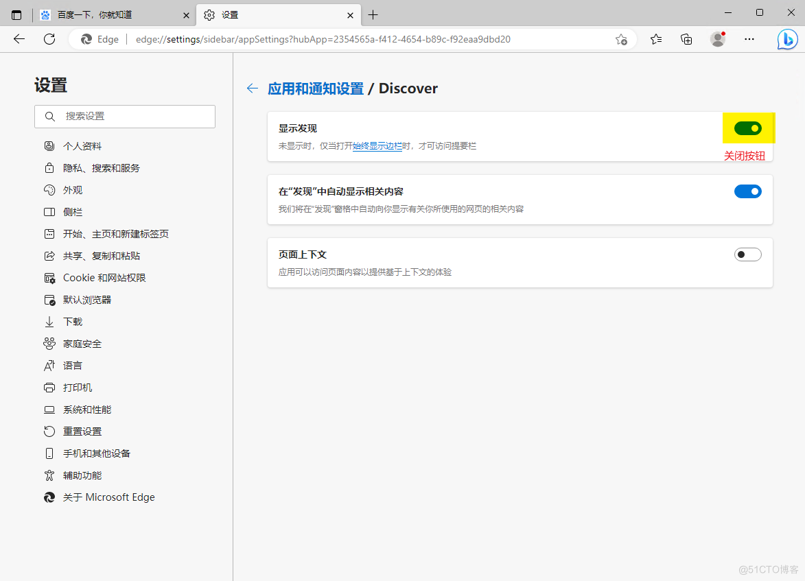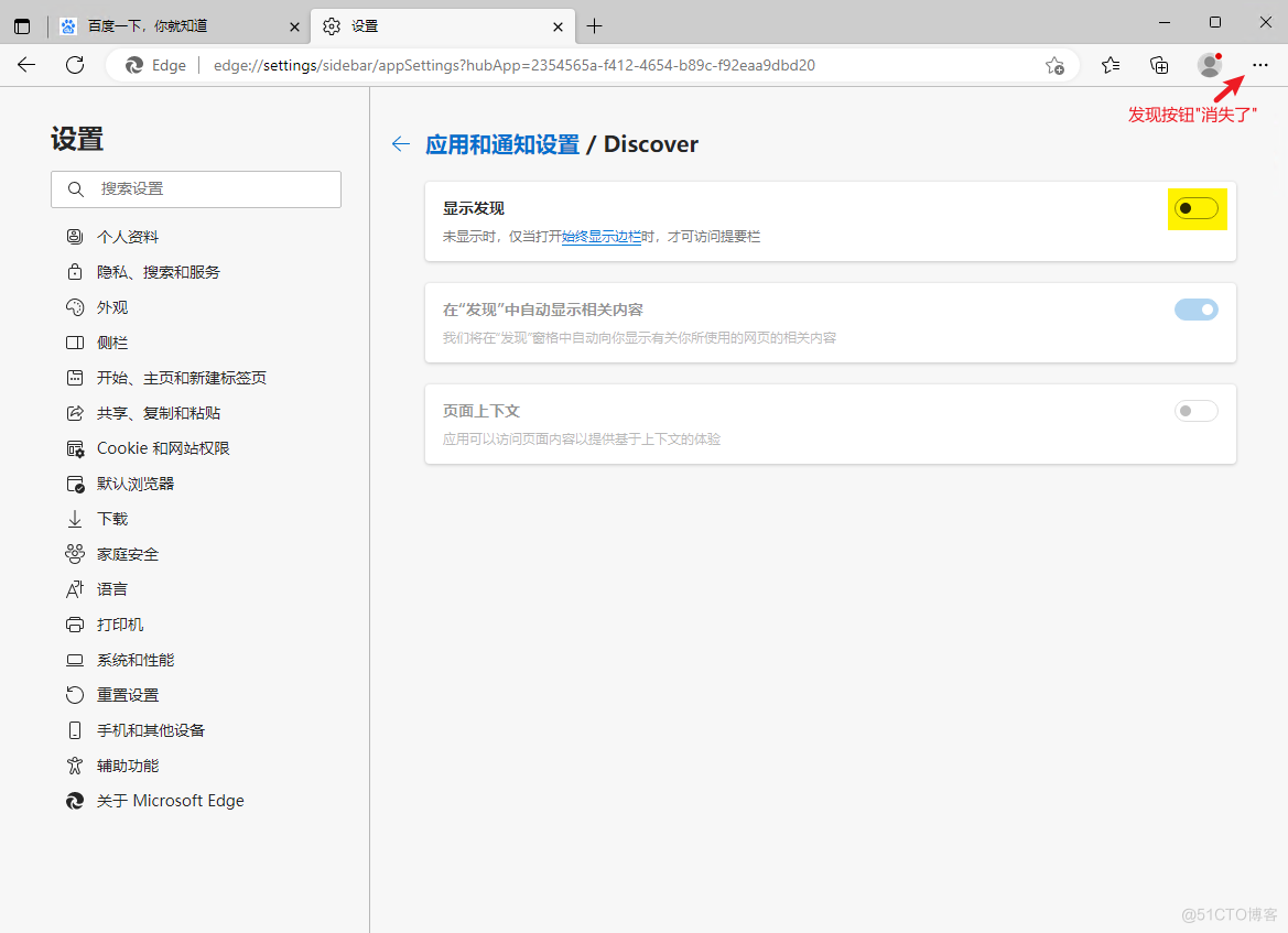 Microsoft Edge瀏覽器關(guān)閉發(fā)現(xiàn)按鈕