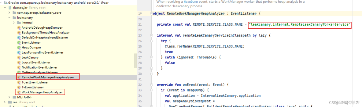 RemoteWorkManagerHeapAnalyzer.remoteLeakCanaryServiceInClasspath ->