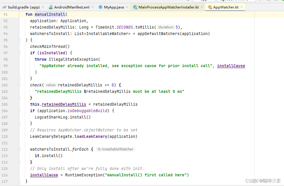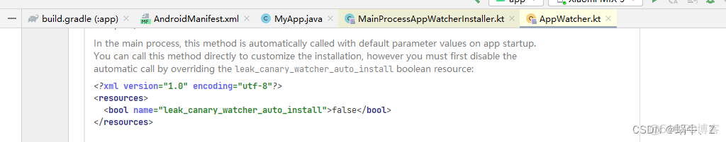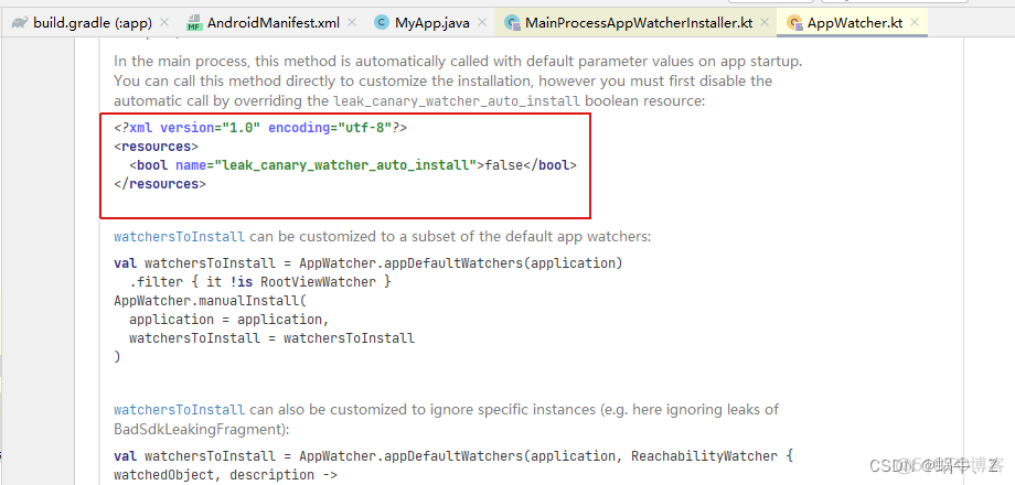 Java:AppWatcher.INSTANCE.manualInstall(application);