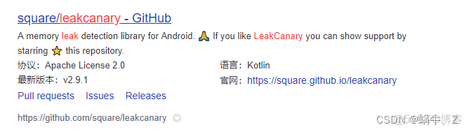GitHub - square/leakcanary: A memory leak detection library for Android.https://www.baidu.com/link?url=bcGyW7ySy9cW2azMXz5h-je6EtkwbMggSIlaEiFfWbtIqf3Yx3rak5qcn3Om3WJp&wd=&eqid=87caa544001114160000000463e1f198