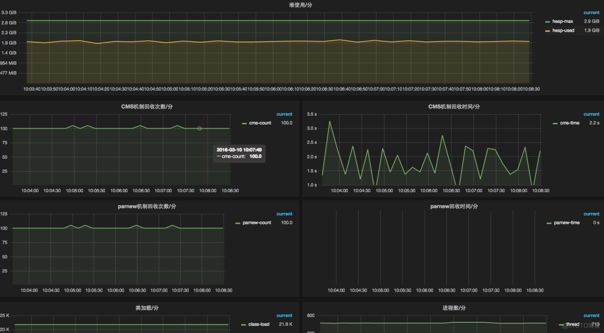 2.堆與棧(非堆no-heap)區(qū)別,堆主要用于存儲(chǔ)new 信息,棧用于線程開銷,通過jstat pid 100s 查看棧的一般都是水平的趨勢(shì)。