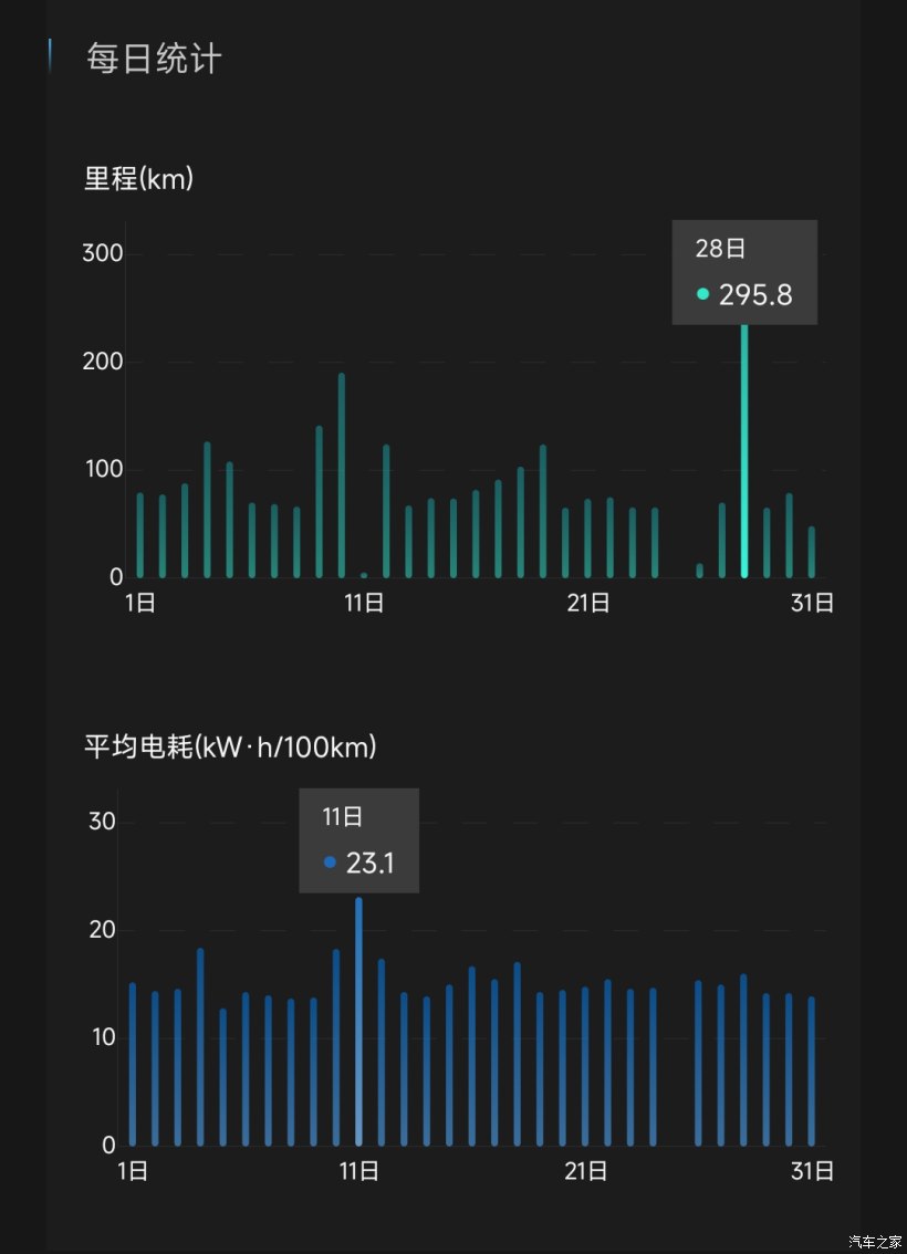 最早的一次行程是早上六點半出發(fā)去上班,周一早高峰你們懂得,平均電耗才14.8,果然開的順暢也是很省電的!
