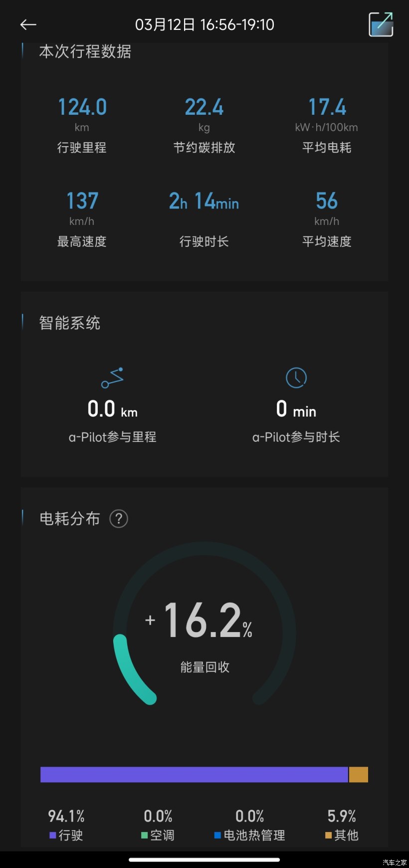 接下來是最長距離的一次行程,總共有124公里,是從房山開回豐臺,兩個多小時的駕駛時長也是最長的時間,電耗為17.4!