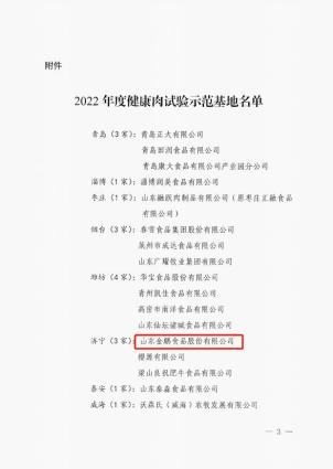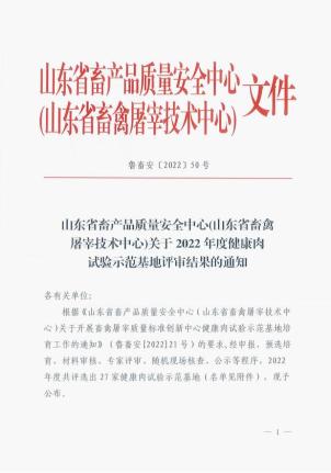 近日,山東省畜產(chǎn)品質(zhì)量安全中心(山東省畜禽屠宰技術(shù)中心)公布了2022年度健康肉試驗(yàn)示范基地名單,鄒城市山東金鵬食品股份有限公司獲得了健康肉試驗(yàn)示范基地榮譽(yù)稱號(hào)。