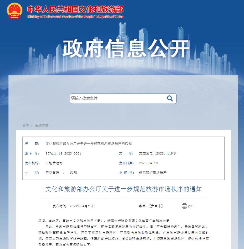 關(guān)于進(jìn)一步規(guī)范旅游市場(chǎng)秩序的通知,