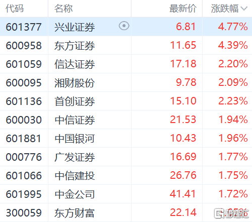 格隆匯4月11日丨興業(yè)證券(601377)、東方證券(600958)雙雙拉升漲超4%,信達(dá)證券、湘財股份漲超2%,國盛金控(002670)、廣發(fā)證券(000776)等紛紛沖高。