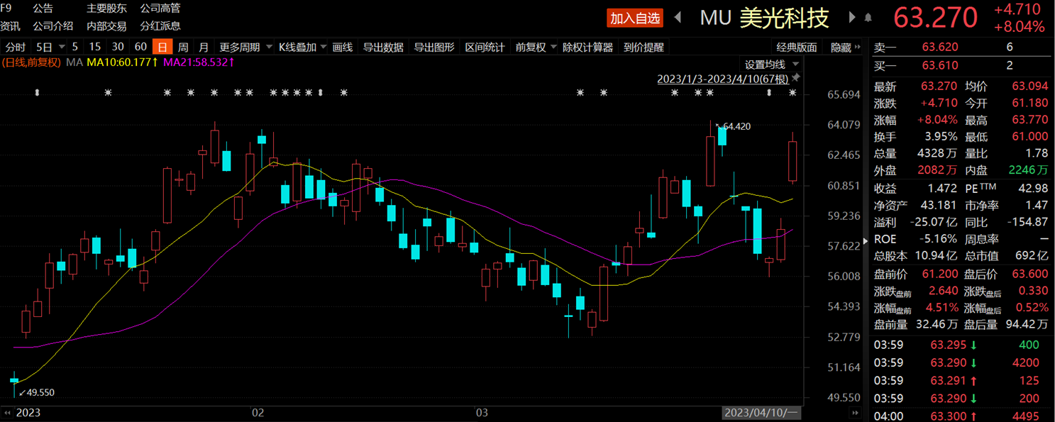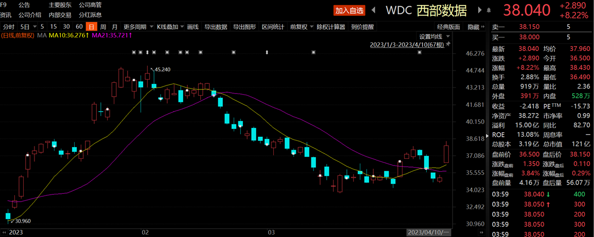 當(dāng)?shù)貢r(shí)間周一,美股大型科技股多數(shù)下跌,蘋果、Meta、谷歌、微軟、特斯拉、臺(tái)積電、英特爾等跌幅不等。但其中,美光科技、西部數(shù)據(jù)雙雙大漲超8%,創(chuàng)下年內(nèi)最大單日漲幅。