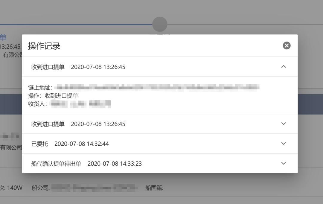 以上港區(qū)塊鏈無紙化換單平臺(tái)為例,可提供辦理提箱計(jì)劃、查驗(yàn)計(jì)劃、進(jìn)港預(yù)錄、預(yù)約取票等服務(wù),還能直接查收海關(guān)、國檢、理貨、放箱、換單等信息。