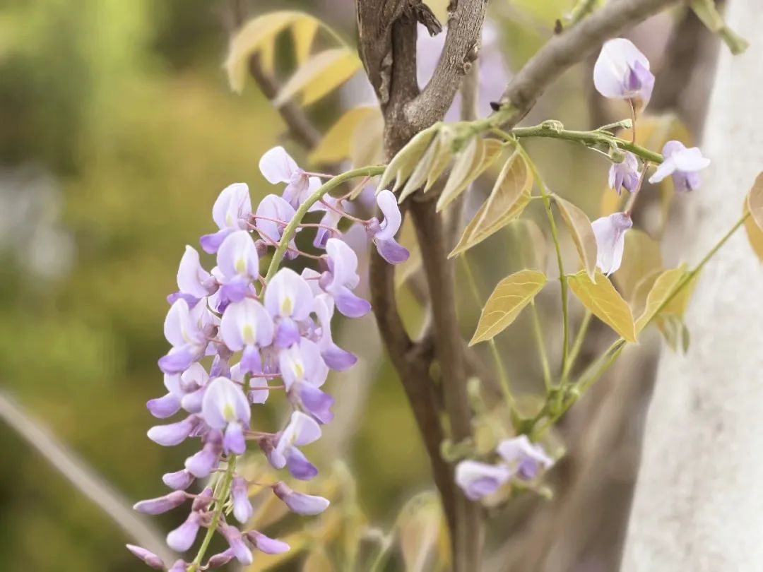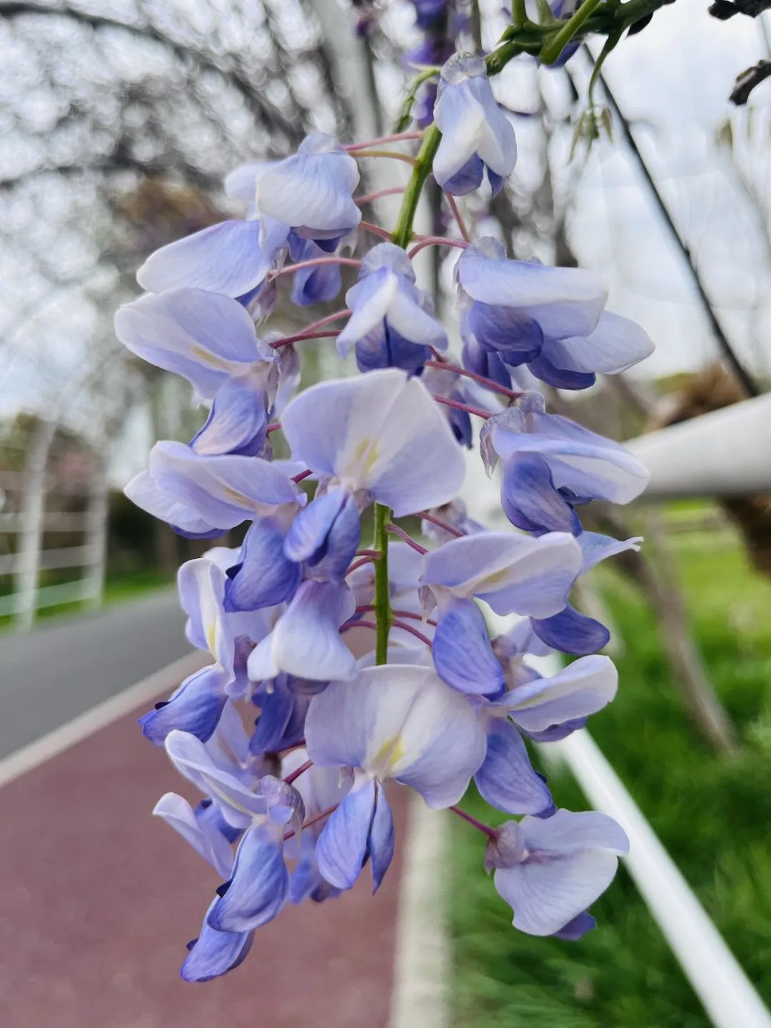 高大的紫藤棚架下,是成片的紫藤花,無數(shù)條紫藤花枝條從空中垂落,仿佛一串串紫色的小鈴鐺匯聚而成的“紫藤花瀑布”。微風吹過,一股淡淡的清香撲鼻而來,讓人不由得沉醉在這迷人的春意里。