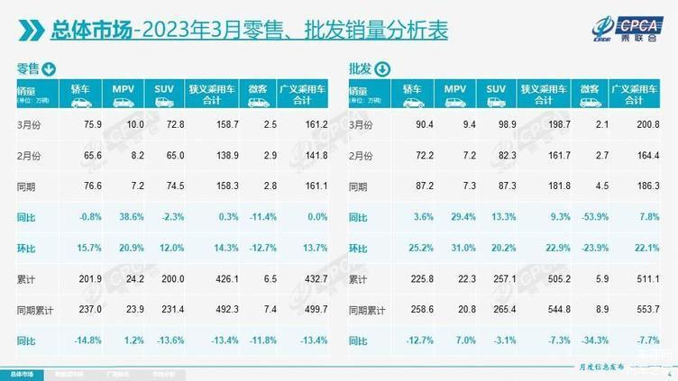 近日,乘聯(lián)會(huì)發(fā)布了2023年3月份乘用車市場(chǎng)的產(chǎn)銷數(shù)據(jù)。統(tǒng)計(jì)結(jié)果顯示,3月狹義乘用車的零售銷量為158萬輛,與去年同期相比微增0.3個(gè)百分點(diǎn)。1-3月份,累計(jì)銷量為426.1萬輛,同比下滑13.4%。