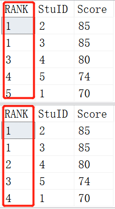 上面是ROW_NUMBER()函數(shù)的結(jié)果,下面是RANK()函數(shù)的結(jié)果。