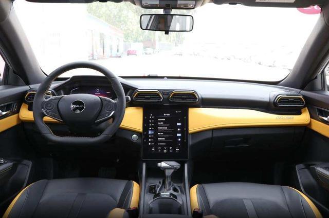 走進東風奕炫馬赫版的車內(nèi),官方命名為“電競座艙”的車內(nèi)空間加入了更多橙黃色的飾板裝飾,黑黃色的搭配了更多賽車元素,六邊形的出風口輪廓相對凸出,分列在臺面中央與兩側(cè),內(nèi)部同樣加入了一些橙黃色元素,中控臺中央為一塊豎直顯示屏,與液晶儀表共同承擔了車內(nèi)的交互和調(diào)節(jié)功能,兩輻式方向盤采用平底造型,帶黃色縫線的處理也能激發(fā)駕駛欲望。