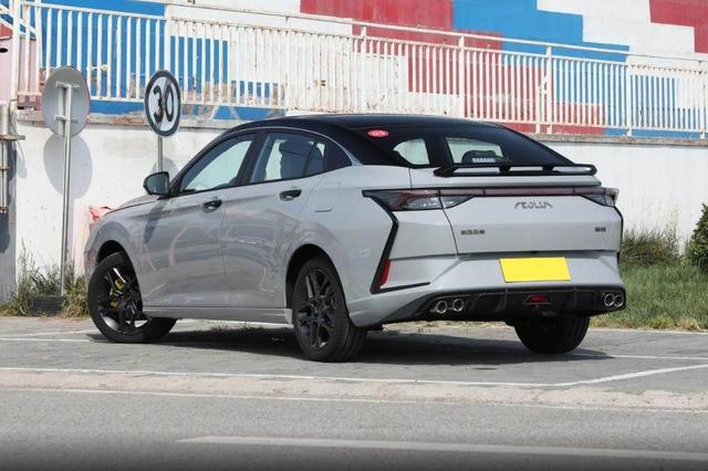 后輪拱上方的肩線與尾門上折角相連,貫穿尾燈的上沿正好處于折痕型面內(nèi),凸出的燈腔造型也讓整個尾部更具有立體層次感,燈組內(nèi)不僅配有貫穿式的燈帶,兩側(cè)還帶有羽翼式的燈組造型,后包圍兩側(cè)還帶有曲折延伸的黑色飾條勾勒,將尾部的立體感進一步激發(fā),車尾底部搭配有帶擴散器樣式的黑色護板,兩側(cè)配有四出排氣,營造出一種很兇的氣勢感。