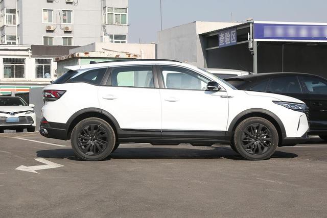 車(chē)身側(cè)面相對(duì)常規(guī),腰線(xiàn)做了平順化的處理,和同價(jià)位很多車(chē)一樣,都采用了懸浮式的車(chē)頂?shù)脑O(shè)計(jì)。