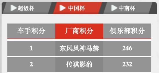 (東風(fēng)風(fēng)神奕炫車隊位列2022年CTCC中國杯廠商積分、車手積分榜單)