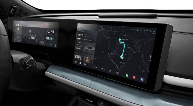 相比于外觀,內(nèi)飾的變化更加明顯,首先就是換裝了兩輻式方向盤,整個(gè)中控區(qū)域?qū)嶓w按鍵也被進(jìn)一步取消,而原有的懸浮式雙聯(lián)屏同樣得到了升級(jí),尺寸變得更大,中間依舊呈折角設(shè)計(jì)向駕駛員靠攏,這些改變讓整個(gè)座艙的科技感變得更強(qiáng)。