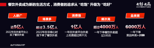 第一,我們發(fā)現(xiàn),2022年僅美團(tuán)一個平臺上,就有5億人點了外賣,覆蓋的人群非常廣闊。