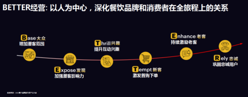 舉個例子,消費者想要點午餐,就會開始瀏覽附近的商家,這時候商家開門做生意,就該思考怎么在這個時間點上找到更多消費者。人群的BASE有多大?就是“Better”方法論的第一個字母“B”。