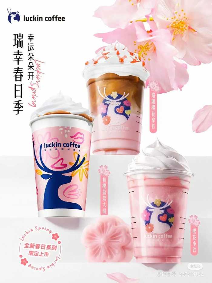 CoCo都可的櫻花粉荔、KUMO KUMO×Rico推出的櫻花蜜桃芝士蛋糕、格力高×櫻桃小丸子聯(lián)名的櫻花扁桃仁味百奇以及櫻花草莓味雙層百力滋、瑞幸咖啡限時(shí)回歸的珞珈櫻花拿鐵、星巴克云櫻輕乳酪拿鐵......每年,圍繞櫻花季的主題營銷數(shù)不勝數(shù)。