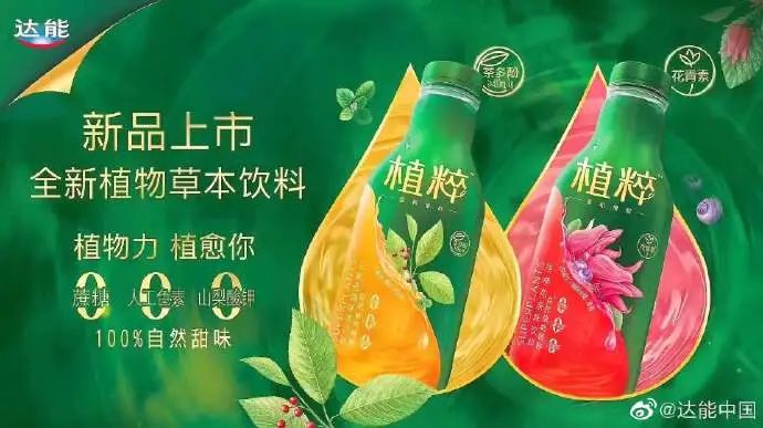 就在前不久,達(dá)能官宣推出了一款名為“植粹”的即飲茶產(chǎn)品,共有洛神花茶味和馬黛茶調(diào)味兩種風(fēng)味。其中,洛神花茶味飲料添加了洛神花、藍(lán)莓、歐洲接骨木莓,沒有加入任何蔗糖、山梨酸鉀和人工色素,主打純粹植物力量,具有天然花香和茶香。