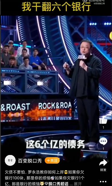 對此知名脫口秀演員羅永浩深有體會:如果你欠銀行100塊,那是你的煩惱。如果你欠銀行1個億,那是銀行的煩惱。