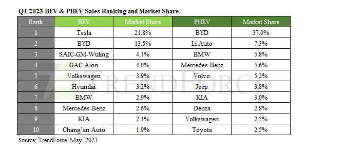 按照全球市調(diào)機(jī)構(gòu)TrendForce的一份最新報(bào)告,2023年第一季度全球新能源汽車銷量激增,特斯拉通過調(diào)價(jià)措施奪回了部分市場(chǎng)份額。