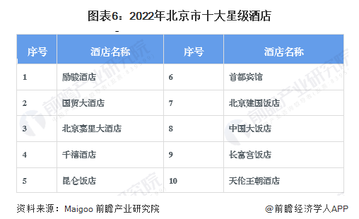 根據(jù)Maigoo排行榜,北京市十大星級(jí)酒店分別為勵(lì)駿酒店、國(guó)貿(mào)大酒店、北京嘉里大酒店、千禧酒店、昆侖飯店、首都賓館、北京建國(guó)飯店、中國(guó)大飯店、長(zhǎng)富宮飯店以及天倫王朝酒店。