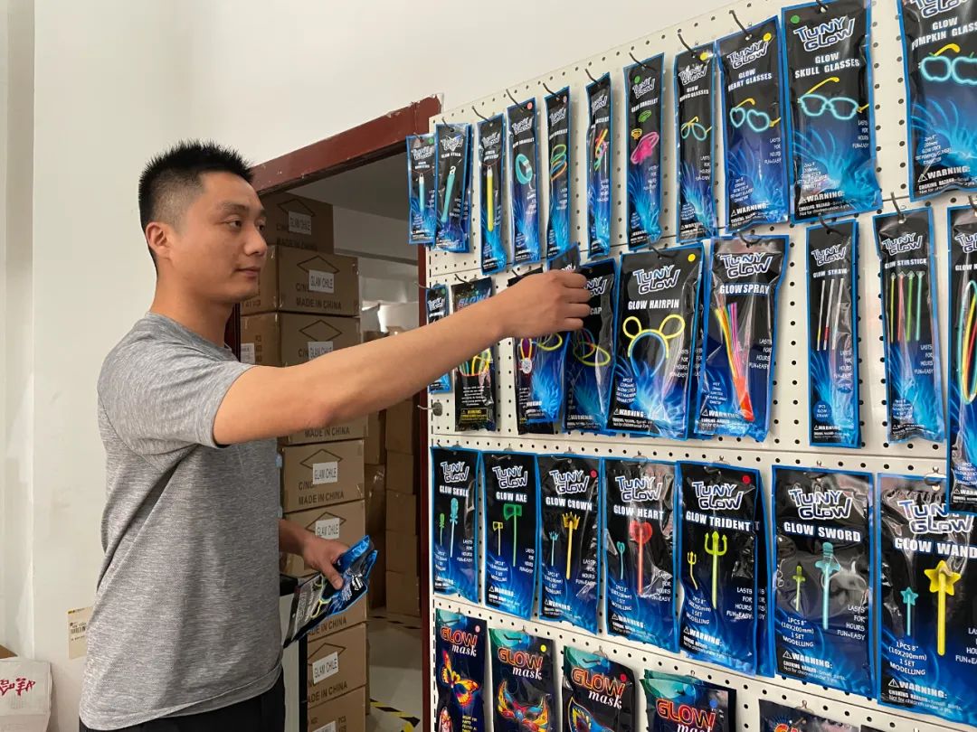 做外貿(mào)多年,楊巧麗發(fā)現(xiàn)了不同國家消費(fèi)者對產(chǎn)品的不同喜好。比如南美國家喜歡造型夸張的熒光棒,以耳環(huán)、頭箍為主;美國消費(fèi)者喜歡手環(huán)形的,項(xiàng)圈那樣的大尺寸也很暢銷;日本買家偏愛能散發(fā)白光的熒光棒,追求爆亮的質(zhì)感,需要廠家定制調(diào)制配方。每年下半年,國外節(jié)日集中,也是出口訂單的旺季。