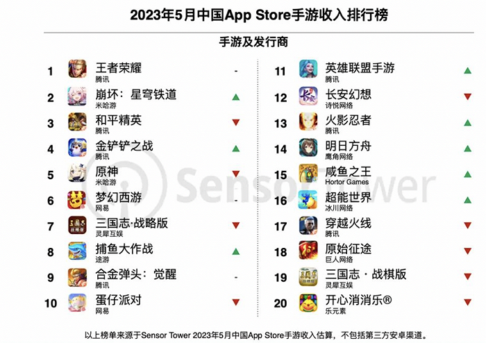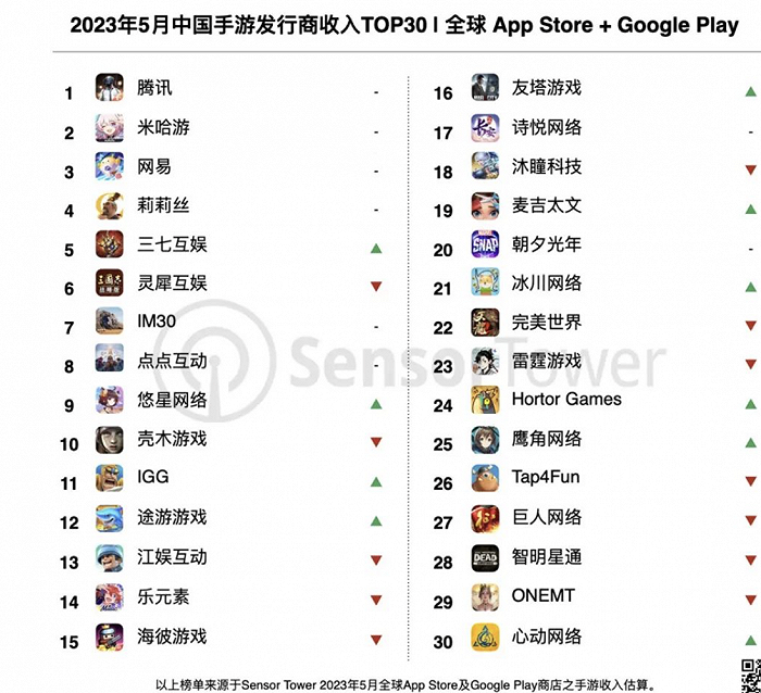 5月中國手游發(fā)行商全球收入榜發(fā)布,騰訊米哈游網(wǎng)易位列前三