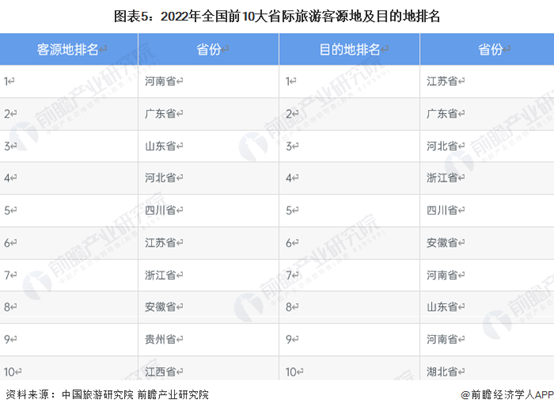 根據(jù)省際旅游客流流出量及流入量計算,全國排名前10位的省際旅游客源地及目的地主要以東部地區(qū)的江蘇省、浙江省,中部地區(qū)的河南省為主。具體排名如下: