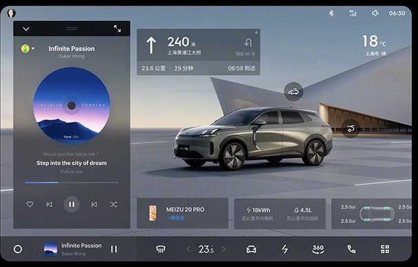 從移動(dòng)互聯(lián)網(wǎng)時(shí)代廝殺而來的手機(jī)廠商們,被視為車機(jī)升級(jí)的強(qiáng)力推手。前有華為,在智選模式中,將鴻蒙系統(tǒng)接近于手機(jī)的體驗(yàn)搬上汽車,后有魅族,被吉利系的星紀(jì)時(shí)代收購(gòu)之后,打造了Flyme系統(tǒng)的車載版本,搭載在吉利旗下品牌的車型上。