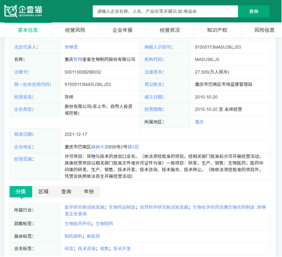 根據(jù)企查貓信息,智翔金泰的經(jīng)營范圍包括生物醫(yī)藥;醫(yī)藥中間體的研發(fā)、生產(chǎn)、銷售、技術(shù)開發(fā)、技術(shù)咨詢、技術(shù)服務(wù)、技術(shù)轉(zhuǎn)讓。
