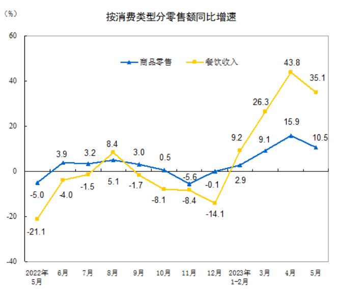 今年以來,擴(kuò)內(nèi)需促消費(fèi)一系列舉措持續(xù)發(fā)力。國家統(tǒng)計局最新數(shù)據(jù)顯示,5月份,社會消費(fèi)品零售總額37803億元,同比增長12.7%,比上月回落5.7個百分點(diǎn)。1~5月份,社會消費(fèi)品零售總額187636億元,同比增長9.3%。