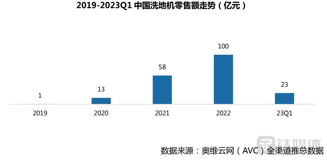 三年時間,從0到1,洗地機(jī)已然成為清潔電器賽道增長的新引擎,玩家也從十幾家增至近兩百家。據(jù)奧維云網(wǎng)數(shù)據(jù)顯示,2019年洗地機(jī)行業(yè)零售額還不足1億元,2022年行業(yè)零售額便達(dá)到99.7億元。