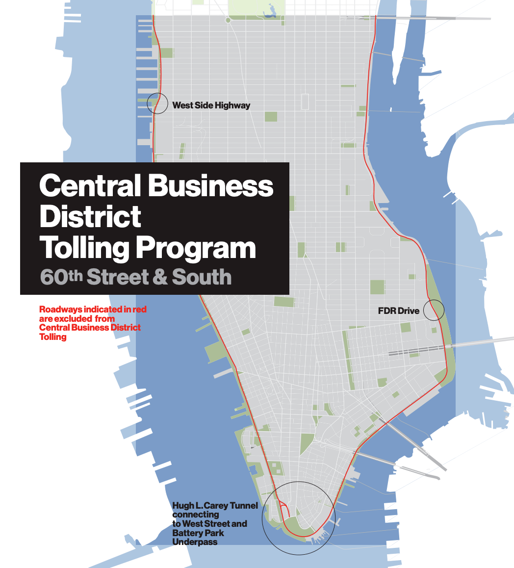 當(dāng)車輛進(jìn)入曼哈頓60街以南的曼哈頓中央商務(wù)區(qū)(CBD)時(shí),收費(fèi)將通過攝像頭系統(tǒng)掃描車牌來執(zhí)行。僅通行于哈德遜河和東河沿線高速公路的司機(jī)可以免交這筆費(fèi)用,而擁堵區(qū)的低收入居民將獲得抵扣性減免。