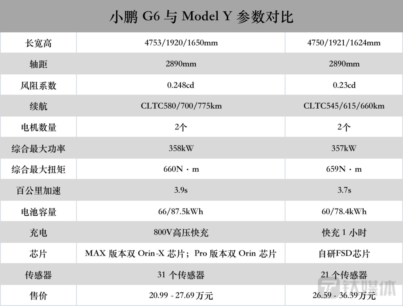 無論是車身尺寸和產(chǎn)品定位,小鵬 G6 可以說是“追著 Model Y 打”。