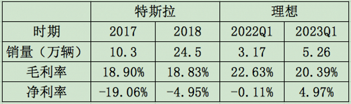 2022年埃安的年均產(chǎn)能達(dá)到了20萬以上,產(chǎn)銷規(guī)模擴(kuò)大了一倍,這必然會(huì)影響公司的經(jīng)營數(shù)據(jù),這里選取特斯拉和理想在這一階段的數(shù)據(jù)變化來做參考依據(jù)。之所以理想只選取了Q1數(shù)據(jù),是因?yàn)?022年理想在下半年進(jìn)行了大規(guī)模產(chǎn)線切換,全年數(shù)據(jù)有明顯的噪音擾動(dòng)。
