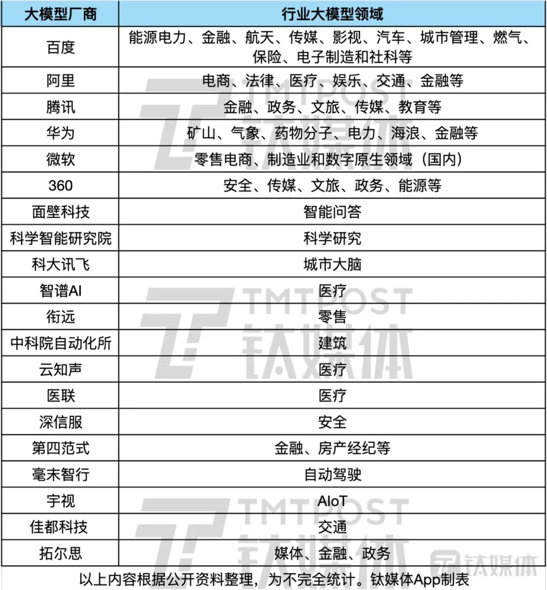 國際上,微軟、亞馬遜等大廠也開始向企業(yè)級(jí)服務(wù)尋求商業(yè)化路徑,開始進(jìn)行多個(gè)行業(yè)的探索;國內(nèi),諸如百度、阿里、騰訊、華為都在快馬加鞭加速行業(yè)大模型投入。