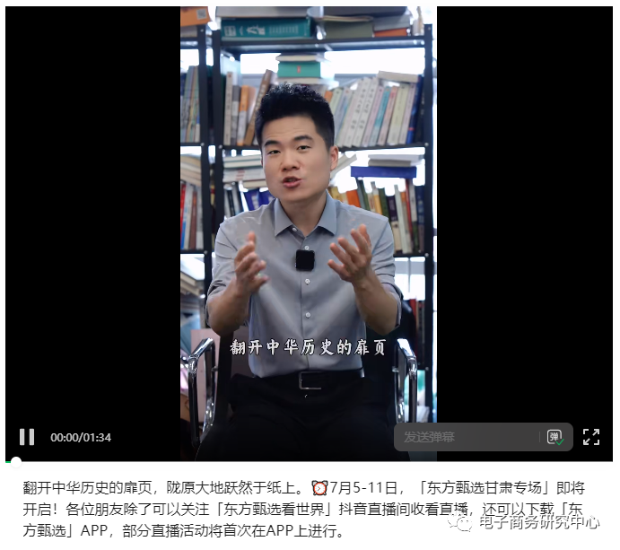 7月3日,東方甄選發(fā)文稱,將于7月5日-11日開展甘肅專場直播活動(dòng),此次活動(dòng)的部分直播將首次在APP上進(jìn)行。屆時(shí),東方甄選主播將帶領(lǐng)鏡頭前的觀眾,前往蘭州、武威、張掖、酒泉、嘉峪關(guān)等市著名景點(diǎn),完整游歷著名的河西走廊。