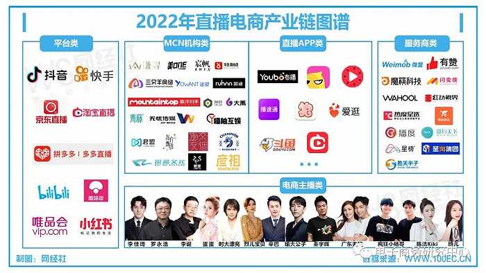 從網(wǎng)經(jīng)社企業(yè)庫(COP.100EC.CN)獲悉,類似的跨平臺(tái)直播MCN機(jī)構(gòu)還有不少。如交個(gè)朋友直播間已布局了抖音、淘寶直播、京東直播等平臺(tái);謙尋在淘寶直播布局蜜蜂驚喜社、抖音布局海豚驚喜社;遙望網(wǎng)絡(luò)在抖音布局“遙望未來站”、淘寶直播布局“遙望夢想站”、快手布局“遙望幸福站”。