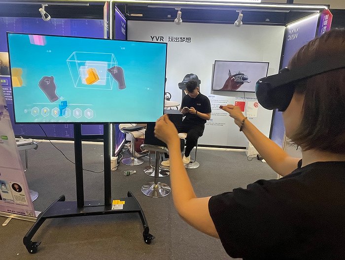 因此,使用者可以在戴上VR眼鏡、無需手柄的情況下,憑雙手完成點(diǎn)擊、拖拽、滑動(dòng)等交互動(dòng)作。在展會(huì)現(xiàn)場(chǎng),公司向觀眾開放體驗(yàn)了首款手勢(shì)交互VR游戲內(nèi)測(cè)版本。